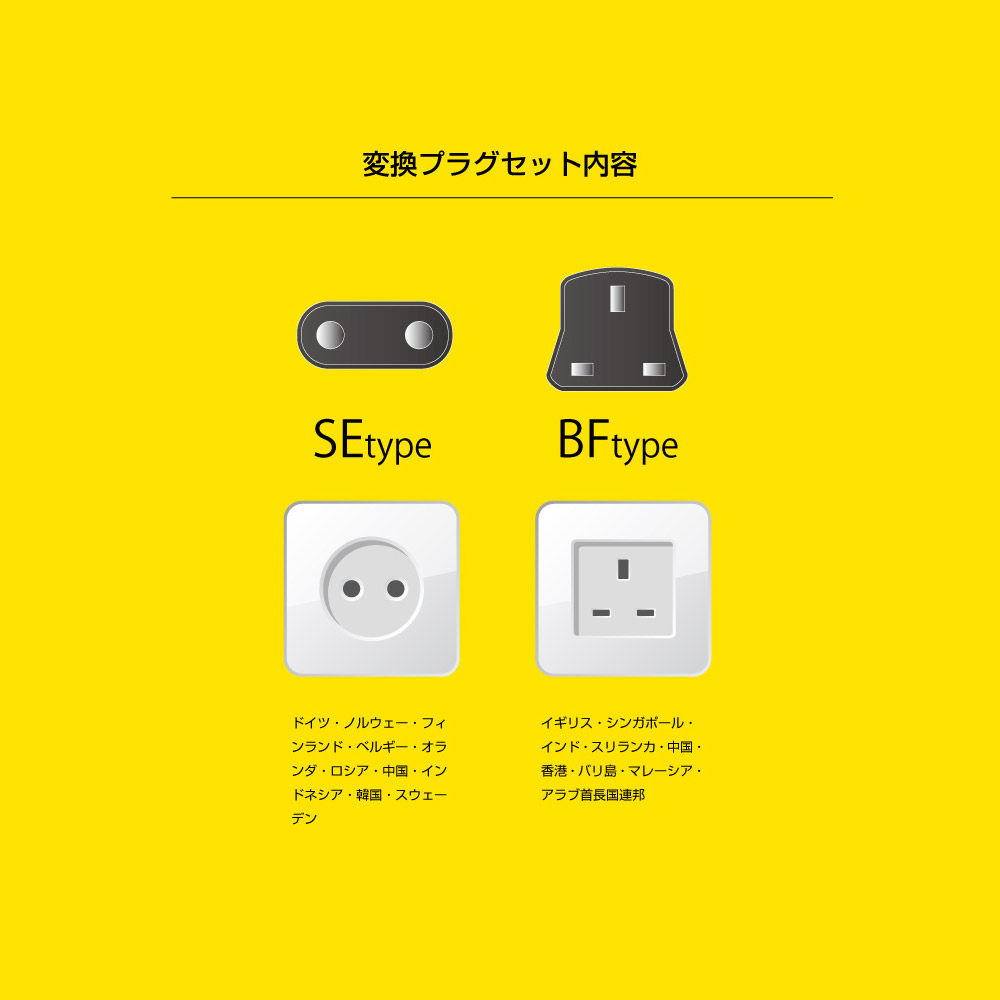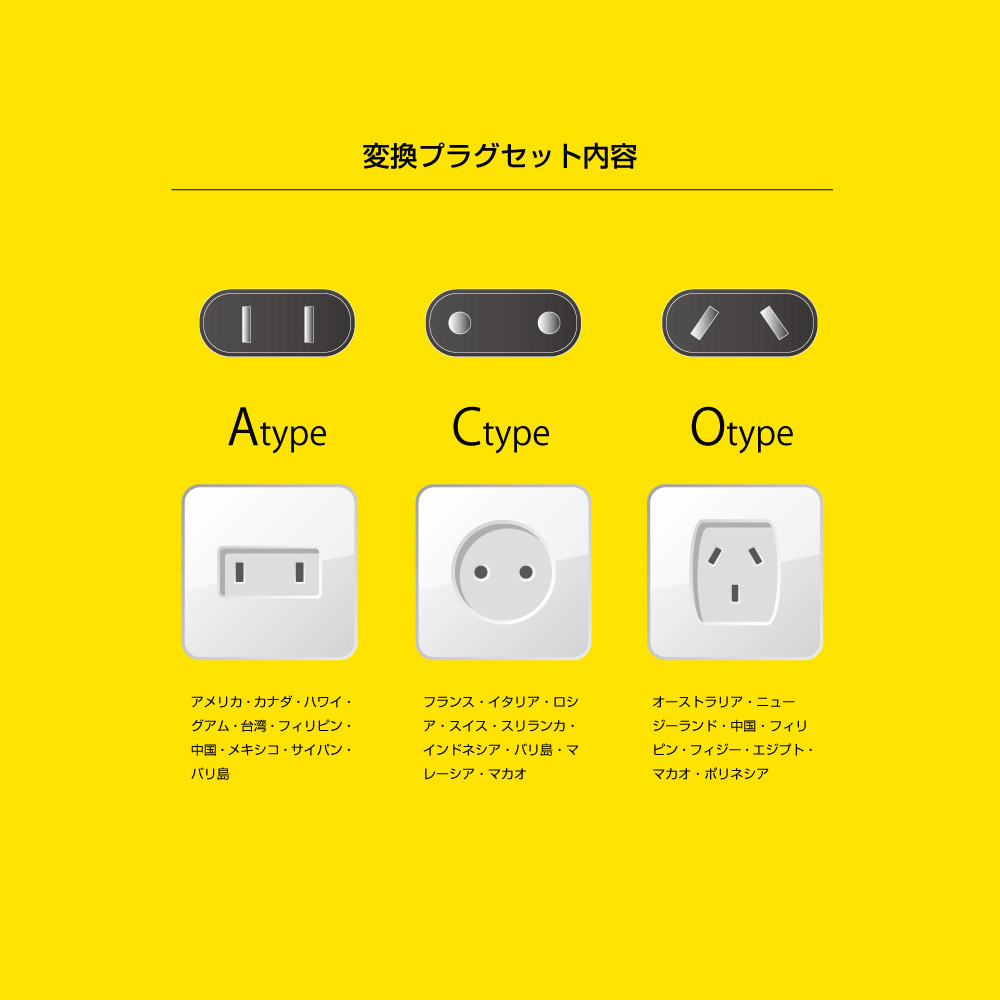| 変換プラグとは? | 海外の電圧やコンセントプラグ形状は日本の物と異なるものが多く変圧器や変換プラグが必要になります。海外に行かれる場合は事前に準備していかれるのをお勧めいたします。 |